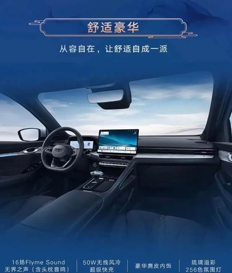 实用性配置同样到位。新增的50W无线快充带风冷主动散热,手机放上去不仅充得快,不会发烫。储物空间的设计经过推敲,随身物品都能找到合适的位置。Flyme Sound 16扬无界之声由大师级团队调校,1000W独立功放配合12通道布局,16个扬声器分布在车厢各处,加上同级唯一的主驾头枕音响,整个车厢就是一个移动音乐厅。