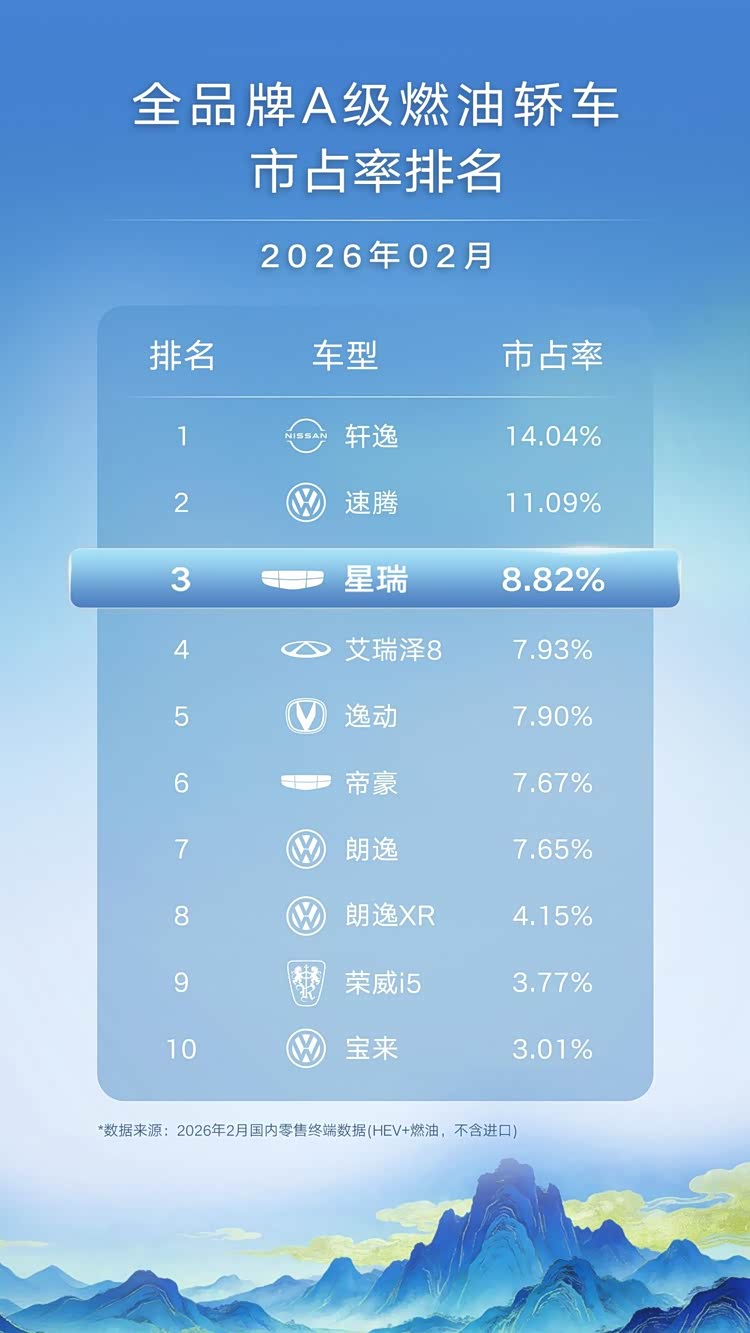 2026年2月,星瑞以8.82%的市占率稳居全品牌A级燃油轿车第三、中国品牌第一。13152辆的月销背后,除了动力、智能、安全这些硬指标,还有一个软实力被越来越多用户提及:内饰氛围。当你每天在车里度过一两小时,内饰好不好、氛围舒不舒服,就成了真正影响心情的事。
