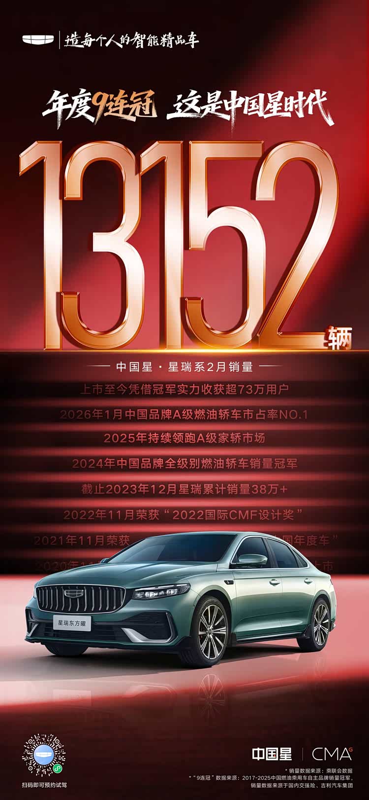 驾控与舒适双优!星瑞全新东方曜2月热销13152辆,市占率第一