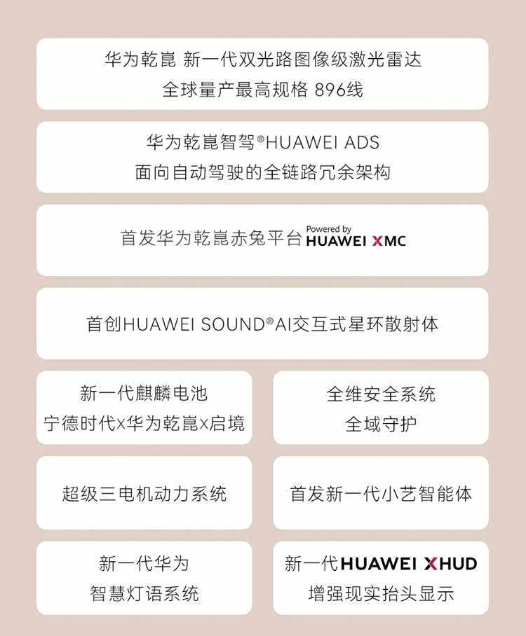 更重要的是,这台启境GT7拥有华为的深度赋能,包括华为最新的896线激光雷达、HarmonySpace鸿蒙座舱、三电机系统以及HUAWEI XMC数字底盘引擎、新一代小艺智能体等等,这将大幅强化GT7的市场竞争力。