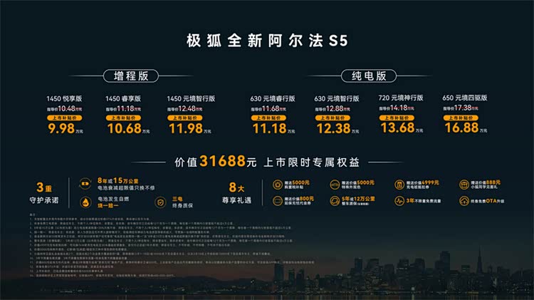 纯电720km/增程1450km,极狐全新阿尔法S5上市补贴价9.98万起