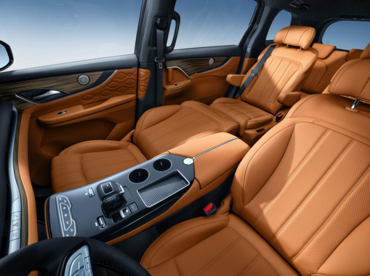 空间布局:轴距 3070mm,采用 2+2+3 七座布局,第二排配备独立座椅,支持多向调节与舒适功能。