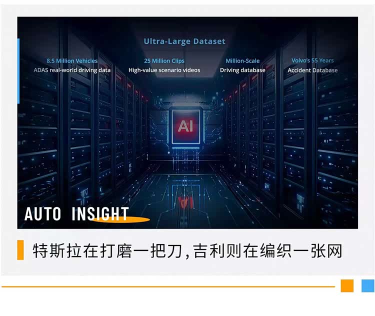 至此,人们的关注点也应该从“谁是中国的特斯拉”转向“中美汽车产业谁能更早实现AI+汽车的革命与落地”:如果说特斯拉代表的AI工业革命硅谷样本正在以算法定义AI汽车想象的未来,那么以吉利为代表的中国式AI造车正在用体系的力量改变AI汽车切实的当下。