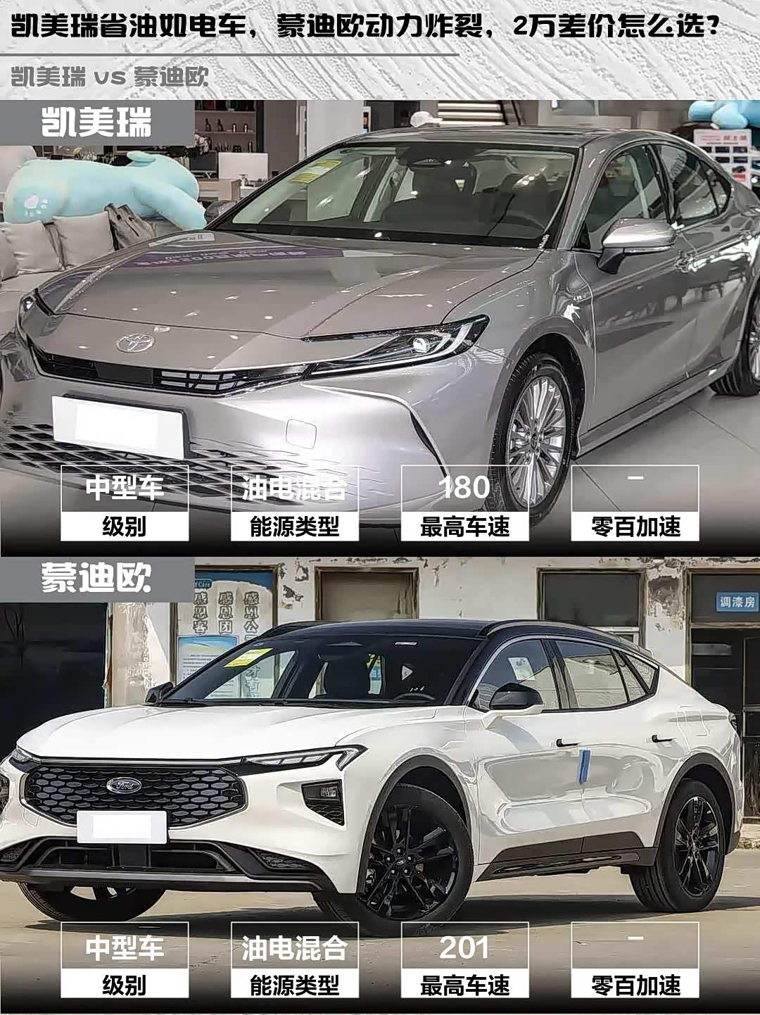 凯美瑞省油如电车,蒙迪欧动力炸裂,2万差价怎么选?
