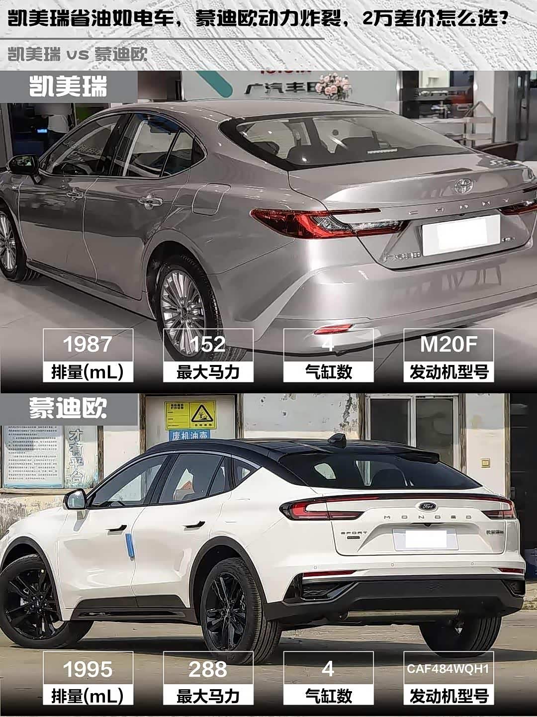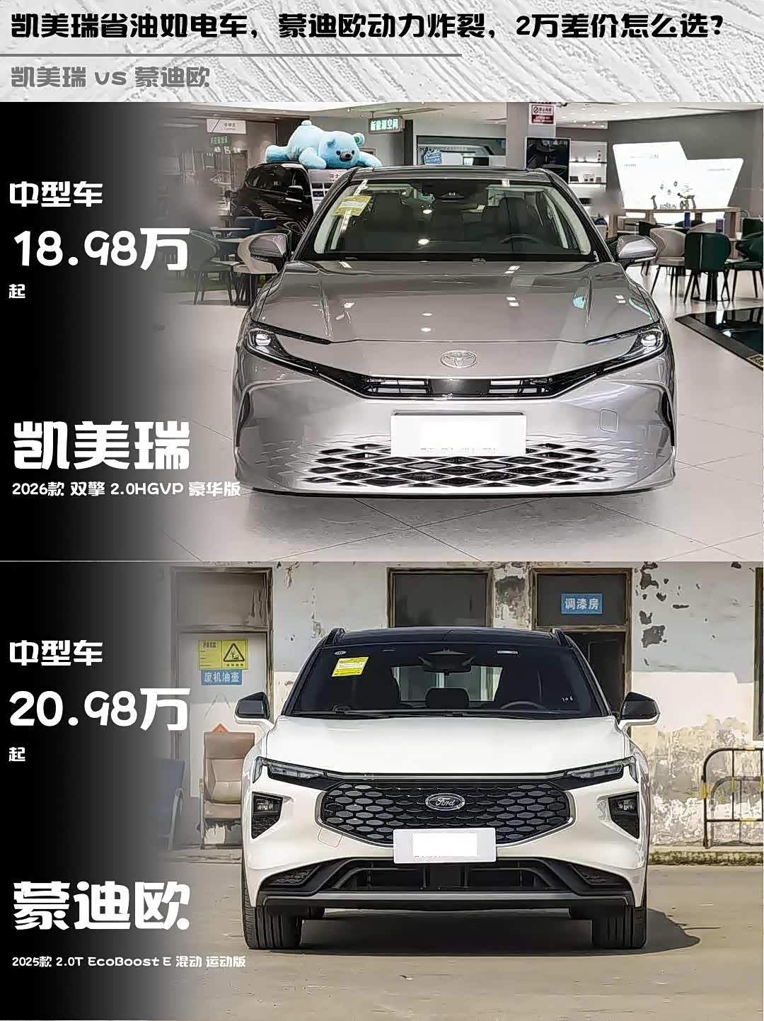 最后说价格:凯美瑞18.98万 vs 蒙迪欧20.98万,2万差价换来的差异,你会为省油平顺买单,还是为狂暴动力掏腰包?评论区蹲真实车主反馈!