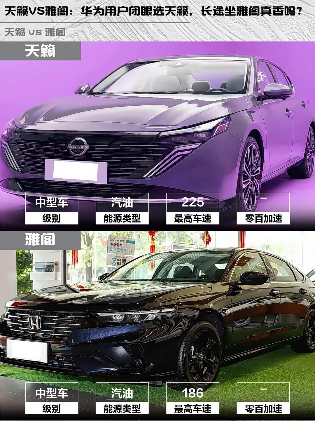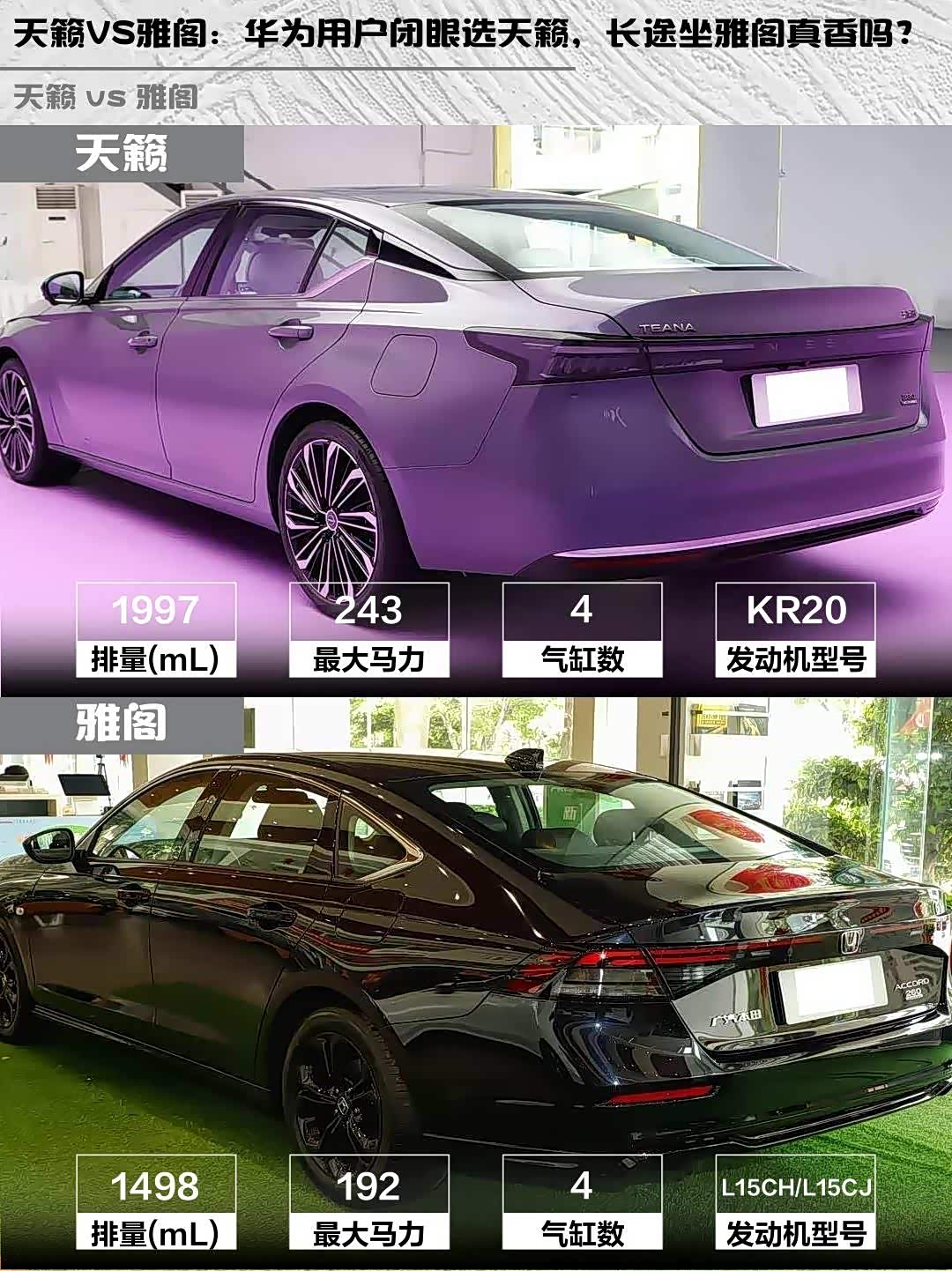 天籁2.0T可变压缩比发动机243马力,中后段加速底气十足,WLTC油耗7.12L;雅阁1.5T 192马力城市代步够用,WLTC油耗6.6L更省油。但天籁加92号油,雅阁推荐95号,长期使用成本其实相差不大⛽️