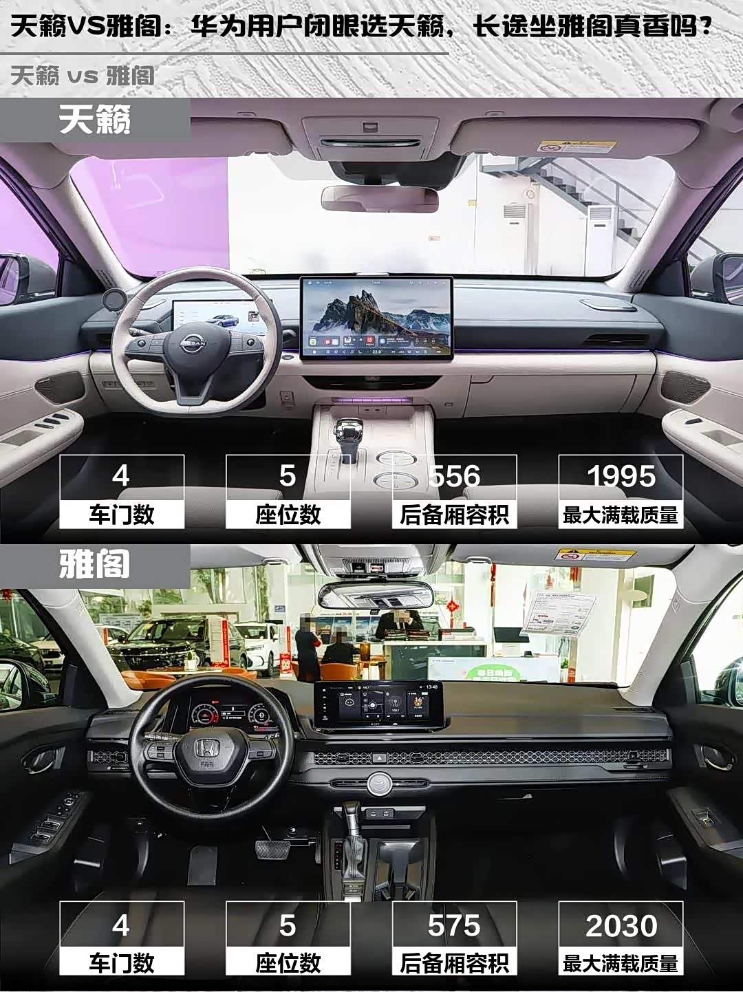 同样17万价位,天籁多了L2辅助驾驶、360影像、全景天窗、座椅按摩;雅阁的优势在可变转向比和更大的后排空间。要说科技感和舒适配置,天籁确实更舍得堆料💰