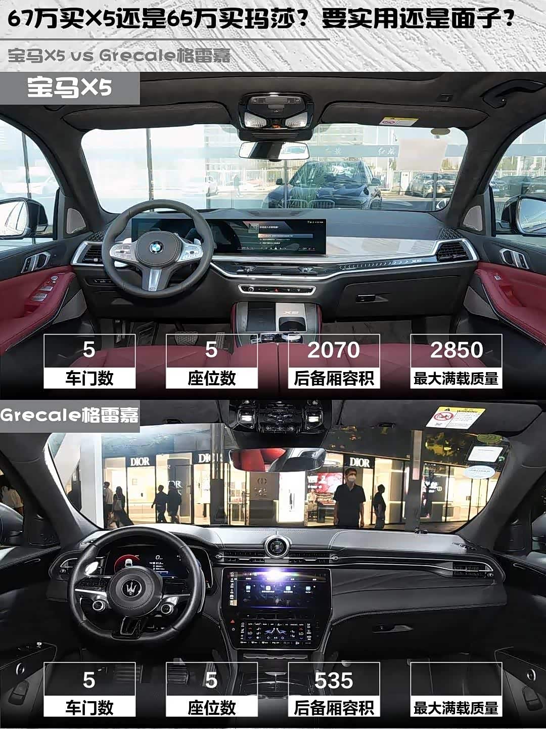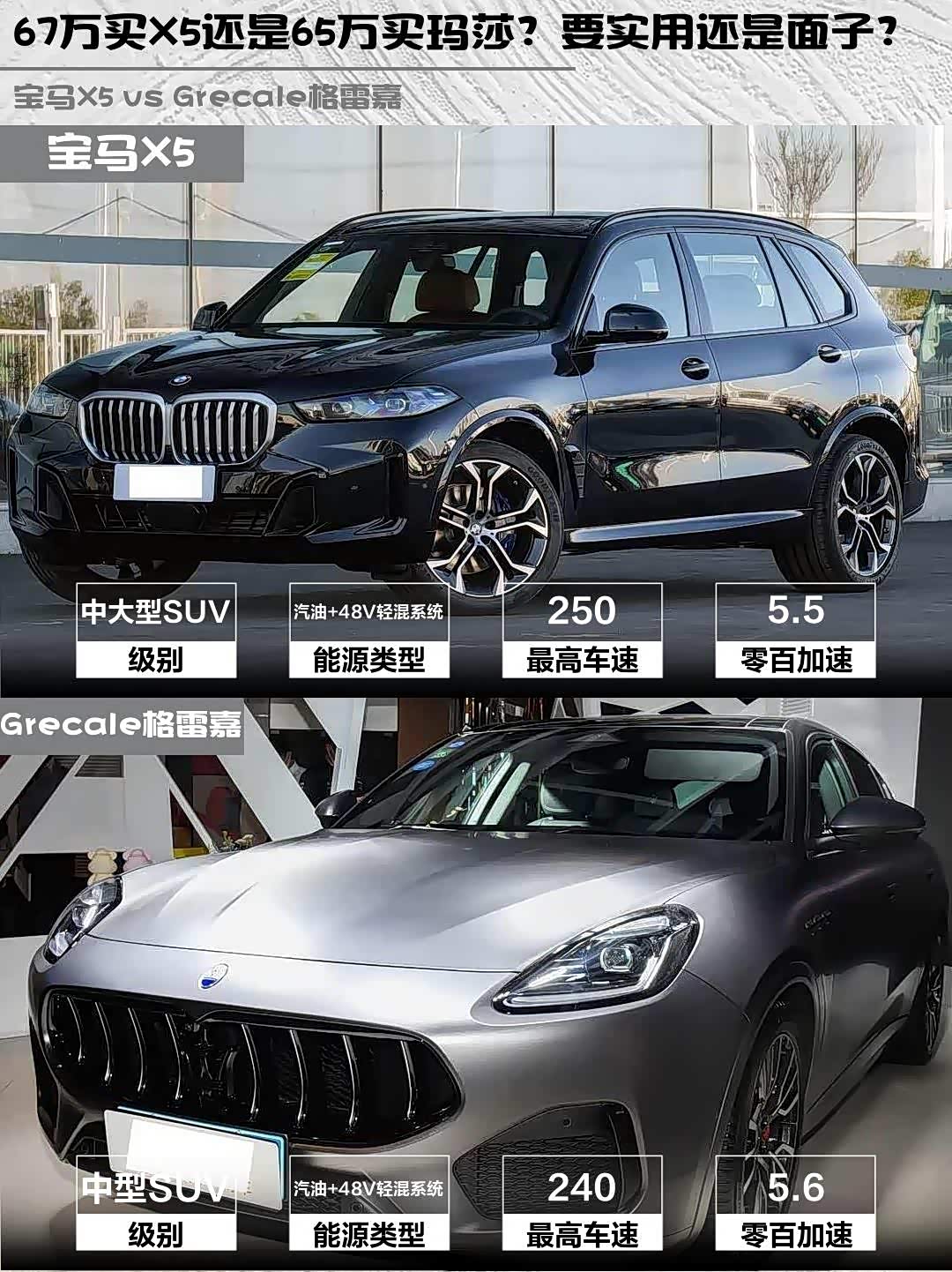 要品牌格调+小众个性选Grecale,三叉戟徽标开出去辨识度拉满;追求全面均衡就选X5,从空间到配置都是六边形战士。话说你们会更倾向哪台的调性呢?