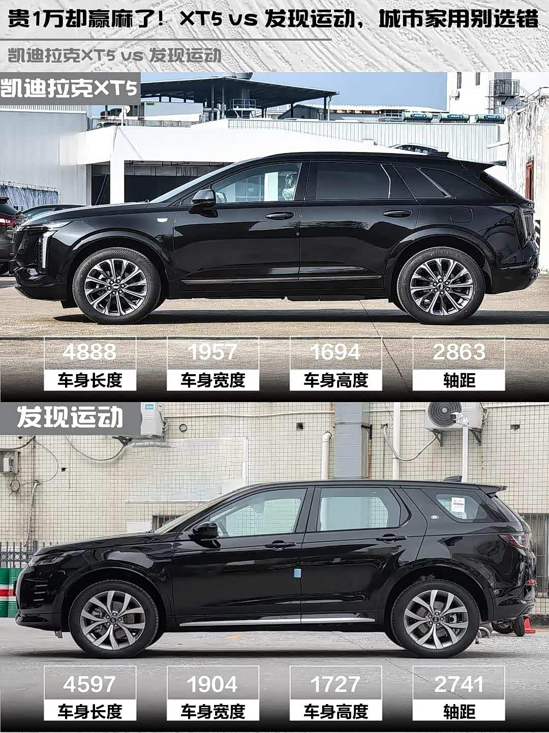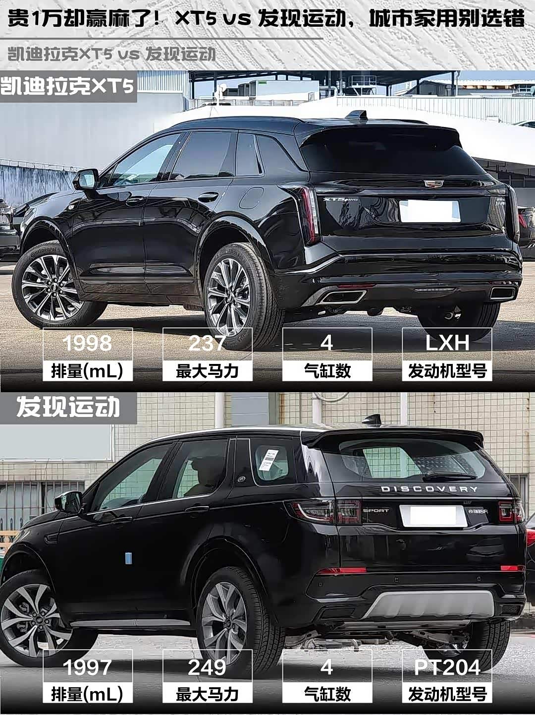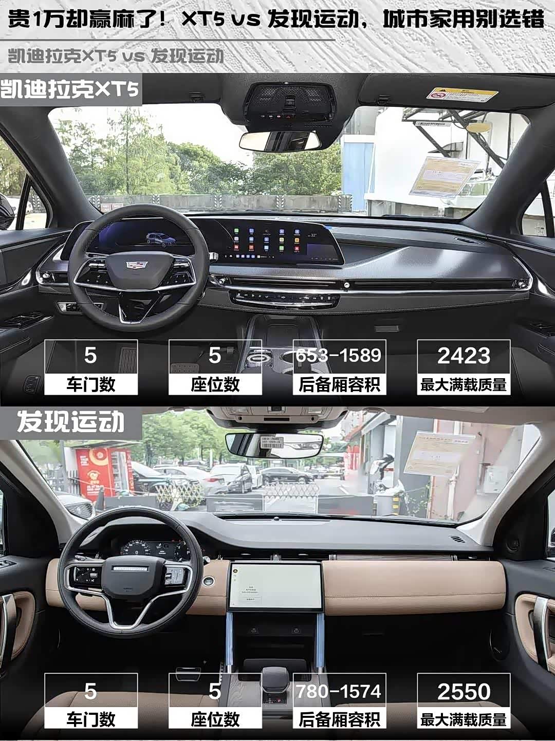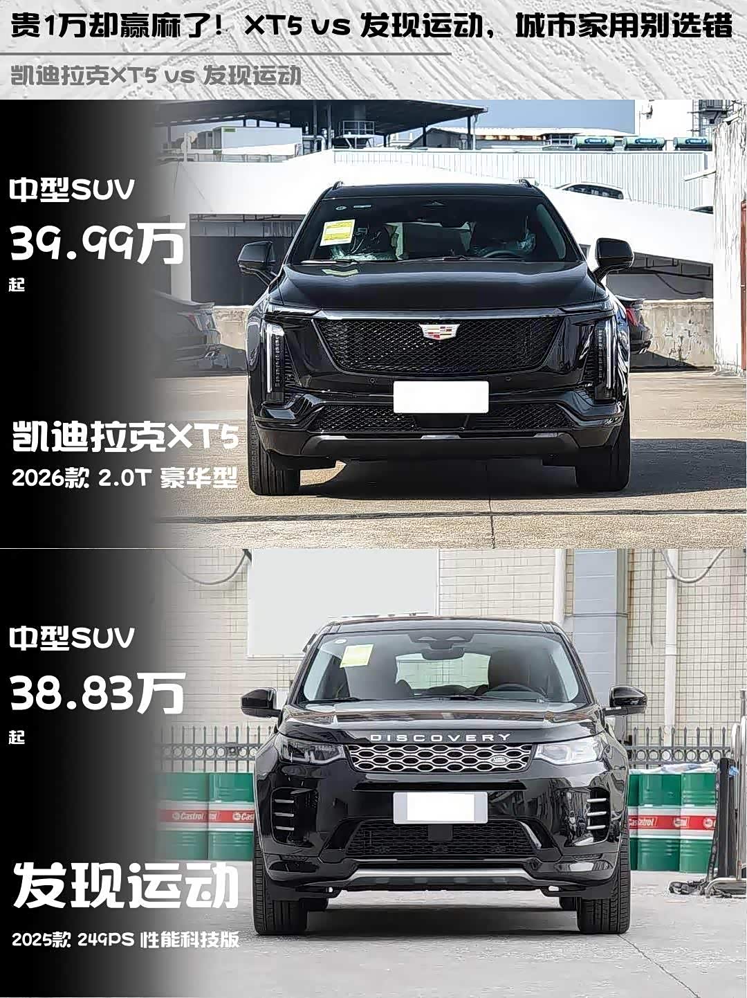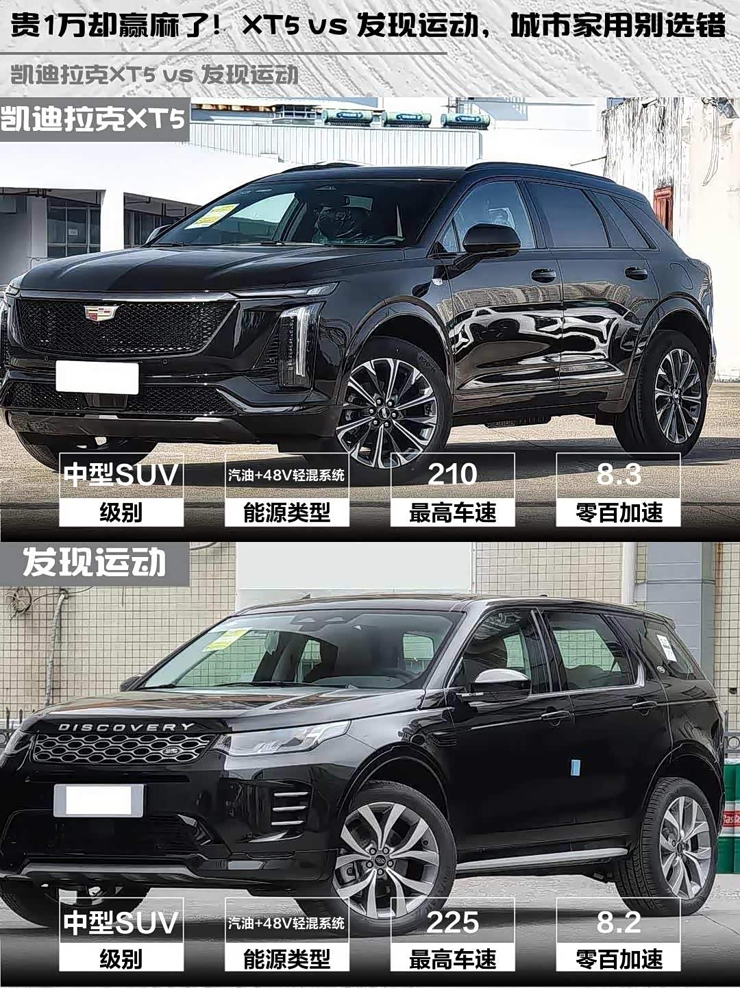 最近后台好多兄弟在问 凯迪拉克XT5(参数|询价)和发现运动怎么选,作为两款热门中型SUV,今天就来个深度对比!🔥