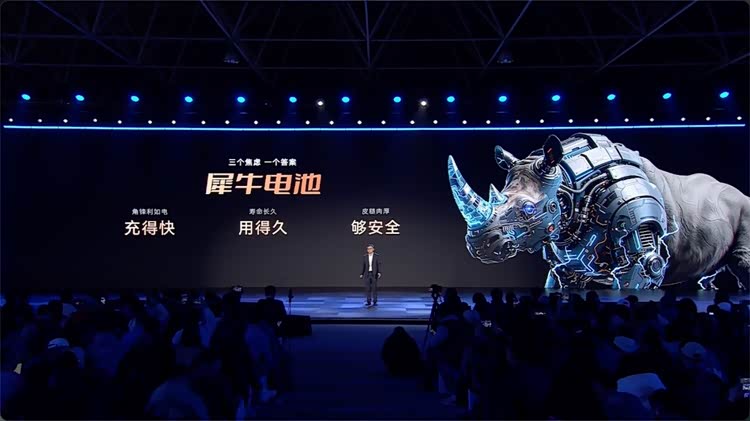 在充电效率上,犀牛电池凭借离子电子复合导电网络、梯度电极结构及急速液冷技术,配合功率超1000kW的迅龙秒充,实现了充电8分钟续航500公里的极致体验。在寿命方面,通过表面稳晶正极、低应变负极及自修复电解液等创新技术,电池循环寿命可达5000次,有效解决了用户“换电不如换车”的保值痛点。