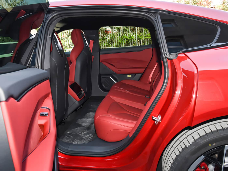 乘坐部分,小鹏P7 Max版全系搭载了运动风格座椅,采用皮/翻毛皮材质混搭,并标配了主副座椅腰部支撑、主座椅腿托调节/侧翼支撑、主副驾驶座电动调节、前排座椅加热/通风/按摩/头枕扬声器、电动座椅记忆、二排座椅加热等功能,副驾还可选装零重力座椅。常规状态下,后备厢同容积为575L,后排座椅放倒后可拓展为1929L,空间表现也值得肯定。