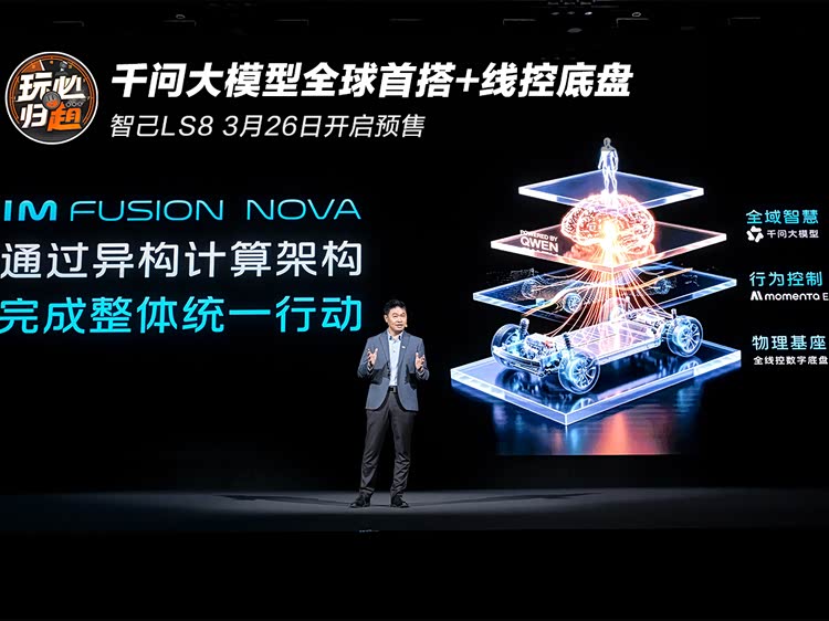 首搭上述所有黑科技的车型,正是将于3月26日开启预售的智己LS8。从目前释放的信息看,LS8的产品力相当凶悍:“千问大模型+线控底盘+新奢华配置”的组合,直接瞄准30万级SUV市场。目前主流竞品在智能化维度仍停留在“智驾+座舱”双线并行的状态,智驾归智驾、座舱归座舱,智己LS8通过IM Fusion Nova舱驾一体三域融合架构,将线控底盘、智驾AI、智舱AI从底层彻底打通,这意味着,LS8的用户将体验到的是:上车一句话,什么都不用碰,直接出发,途中随时变更目的地,复杂路径即时规划,靠边、挪车、超车,一句话立刻执行。