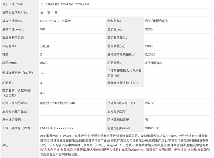 不过北汽没有为享野700升级动力总成,依然采用138kW的1.5T增程器,预计前后双电机也会延续403kW、655N.m的数据,最高车速180km/h有些克制。不过从整备质量看,享野700达到2860kg,考虑到北汽申报的是四座和五座车型,对比BJ60增程五座版,它的整备质量增加了110kg,不知是否能体现在电池容量的变化上——此前北汽选择中创新航的40.3kWh电池包,而享野700会改用宁德时代的三元锂电池,希望能在此前152km的CLTC纯电续航基础上,稍微有所突破。