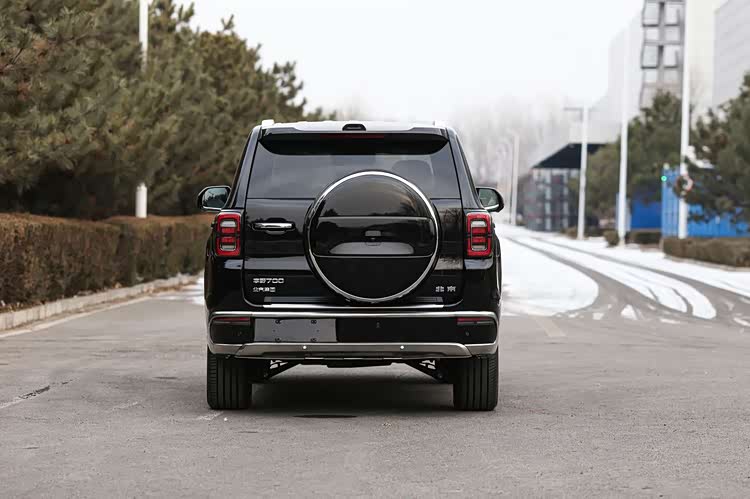 如果要说新车明显的不同,那就是北汽在亮面装饰上的执念——从基础的中网格栅、车门把手、窗框、侧裙,到外后视镜壳、前后保险杠甚至备胎罩,享野700都运用了大面积的镀铬材质,配合275/55 R20多幅轮辋倒也不突兀,而且相比BJ60而言,展现出更多适宜公务用途的可能性。