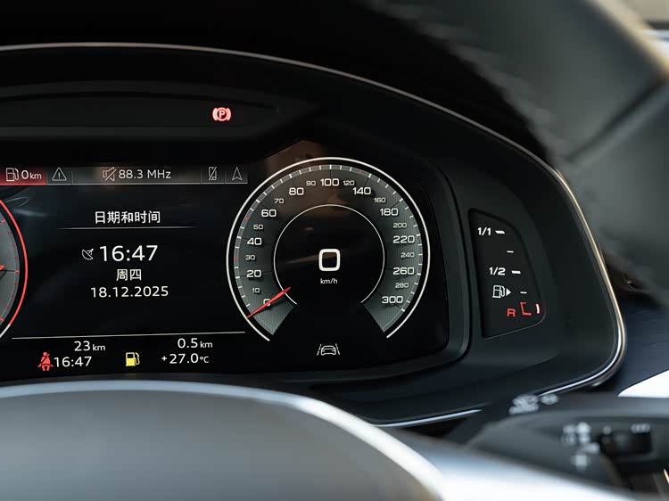 内饰采用奥迪最新家族化风格,环抱式座舱设计贯穿驾驶区,提升驾驶环境的包裹性。中控区域采用三屏布局:11.9英寸数字仪表盘、14.5英寸中控屏以及10.9英寸副驾屏,构建沉浸式信息交互体验。副驾屏为非环抱式设计,并配备电子防窥功能,可在驾驶过程中减少光线干扰。中控屏支持多点触控和手势操作,与车载娱乐、导航及车辆设置系统高度整合,满足不同使用场景的操作需求。