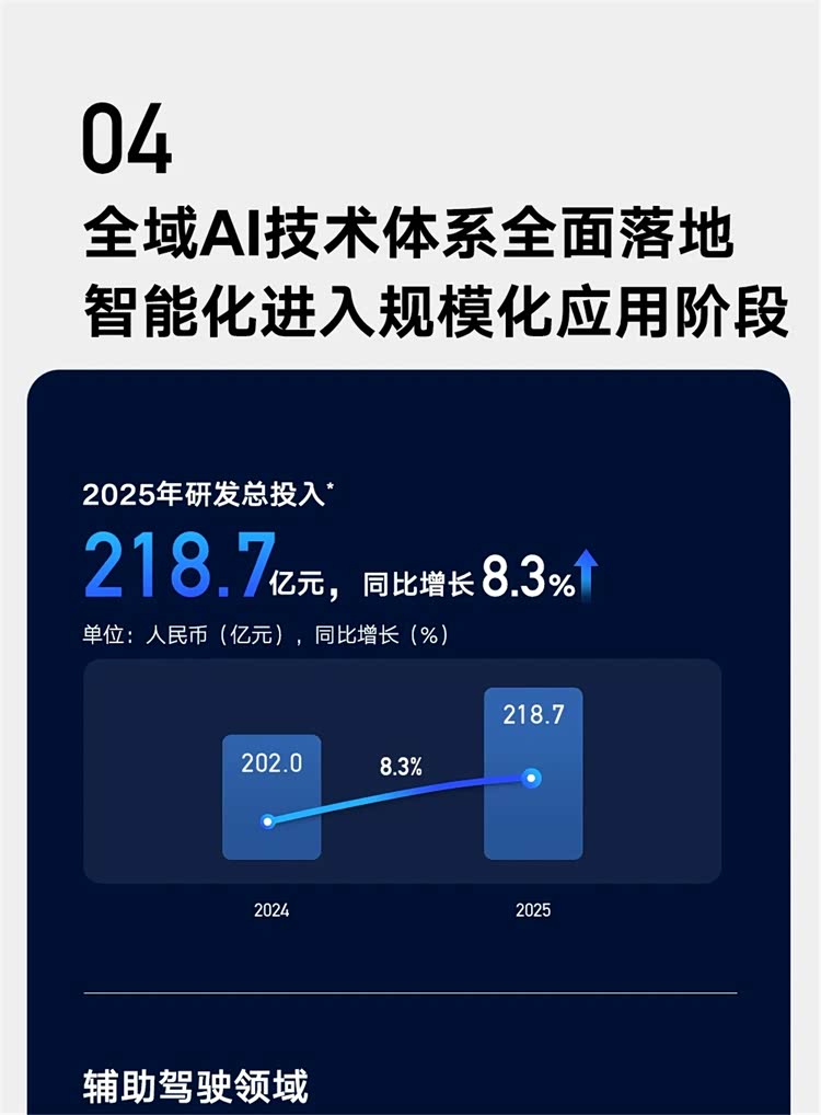 光有完善的品牌矩阵还不够,核心技术的重金投入,才是吉利业绩增长的坚实壁垒。2025年作为“智能吉利2025”战略收官之年,吉利将研发作为核心竞争力,投入176.24亿元重点布局智能电动、全域AI等领域。电动化方面,插混、纯电、i-HEV双擎多路线并行,计划为中国星系列搭载i-HEV技术,将百公里油耗降至3L;智能化方面,吉利率先发布行业首个全域AI技术体系,2026年迭代至2.0版本,推出可自我反思进化的WAM世界行为模型,打造“整车大脑”,提升智能化竞争力。同时,提高研发费用化率,让利润更真实,也为后续技术转化预留空间。