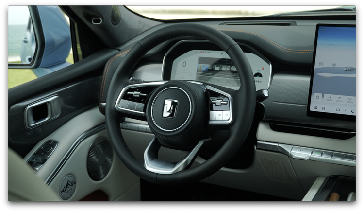 另一个让人印象深刻的地方是,由于全新坦克700坐姿最大离地高度达到1003mm,比FJ酷路泽的834mm、掷弹兵的982mm都要高,所以坐在驾驶位上会有一种一览众山小的感觉,再加上A柱盲区较小,所以理论上全新坦克700在越野时候对于路况的观察会更清晰一些。