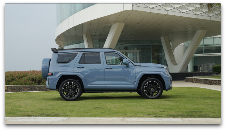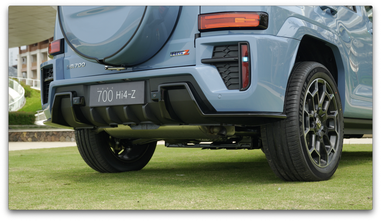 全新坦克700虽然定位中大型SUV,但它并没有跟风传统豪华SUV的加长之风,而是以原创的线条设计打造出协调且富有力量感的车身比例,整个车长超5.1米、高度接近2米,加上标配22寸米其林轮胎,让实车看起来很魁梧。