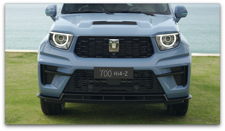 全新坦克700采用了专属麒麟设计语言,标志性的“瑞麟之眼”机械式闭合大灯算是前脸最有记忆点的地方,机械式的开闭过程仪式感十足,且原创度和高级感拉满,这一点甚至是奔驰G/路虎卫士都给不了的。同时,熏黑处理的前中网搭配搭配隆起的机盖线条,让前脸看起来刚劲有力,契合硬派越野的车型定位。