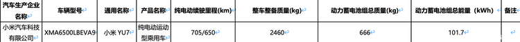 日前,工信部《第二十八批减免车辆购置税的新能源汽车车型目录》正式更新, 小米YU7(参数|询价) GT的申报信息意外曝光,让这款备受关注的高性能纯电车型再次走进大众视野。不同于以往零散的谍照爆料,此次工信部的公示信息,直接披露了新车的核心动力与续航细节,也让大家对这款车型的定位有了更清晰的认知。新车将搭载101.7kWh电池组,纯电续航里程分为两个版本,分别是650km和705km,这样的续航表现,在同级别高性能车型中算是比较均衡的存在,既能满足日常通勤,也能应对中短途出行需求。结合此前业内流出的消息,这款车将搭载双电机动力系统,最大功率可达1003马力,至于大家最关心的价格,目前有消息显示预计在45-50万元区间,不过具体定价还需等待官方后续公布。