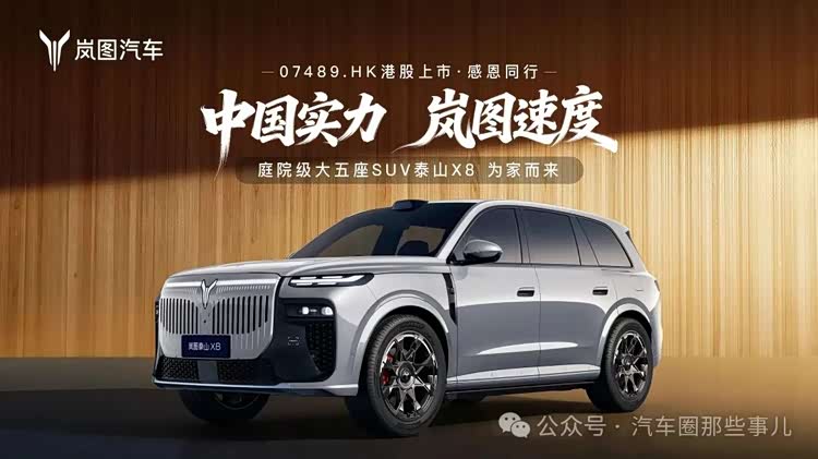 风驰香江,共绘岚图。岚图汽车成功登陆港交所,不仅是企业发展历程中的里程碑时刻,更宣告着岚图正式驶入技术与资本双轮驱动的高质量发展快车道,迎来品牌全球化布局的全新阶段。作为岚图港股上市后的首发战略车型,泰山X8不仅以极致产品力为中国大五座SUV市场树立起难以逾越的产品高峰,更以坚实的硬核实力,成为驱动岚图市值增长、品牌价值提升的核心引擎。