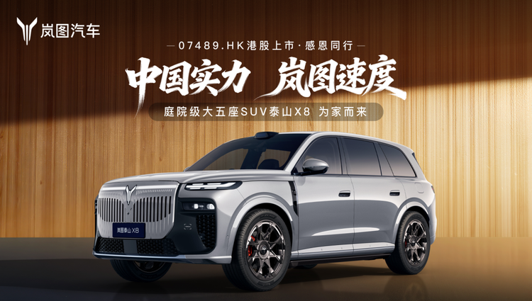 风驰香江,共绘岚图。岚图汽车成功登陆港交所,不仅是企业发展历程中的里程碑时刻,更宣告着岚图正式驶入技术与资本双轮驱动的高质量发展快车道,迎来品牌全球化布局的全新阶段。作为岚图港股上市后的首发战略车型,泰山X8不仅以极致产品力为中国大五座SUV市场树立起难以逾越的产品高峰,更以坚实的硬核实力,成为驱动岚图市值增长、品牌价值提升的核心引擎。