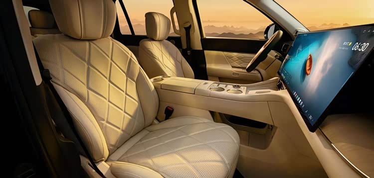 风云T11拥有5205mm×1998mm×1800mm的大六座旗舰车身尺寸,完全能够满足全家人的出行需求。坐进座舱,两块超大屏更是瞬间抓人眼球:前排是6K分辨率的30吋一体式寰宇屏,后排为17.3吋后舱娱乐屏,这并非简单的屏幕堆砌,而是真正实现了前后排独立观影的极致体验。