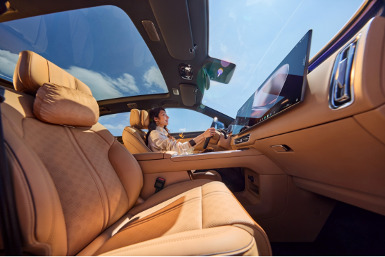 座舱内配备了9.2L智能冷暖冰箱,支持-18℃至50℃温控范围。全车座椅标配通风、加热功能,并具备SPA级按摩功能,其中前排为10点按摩,后排为8点按摩。