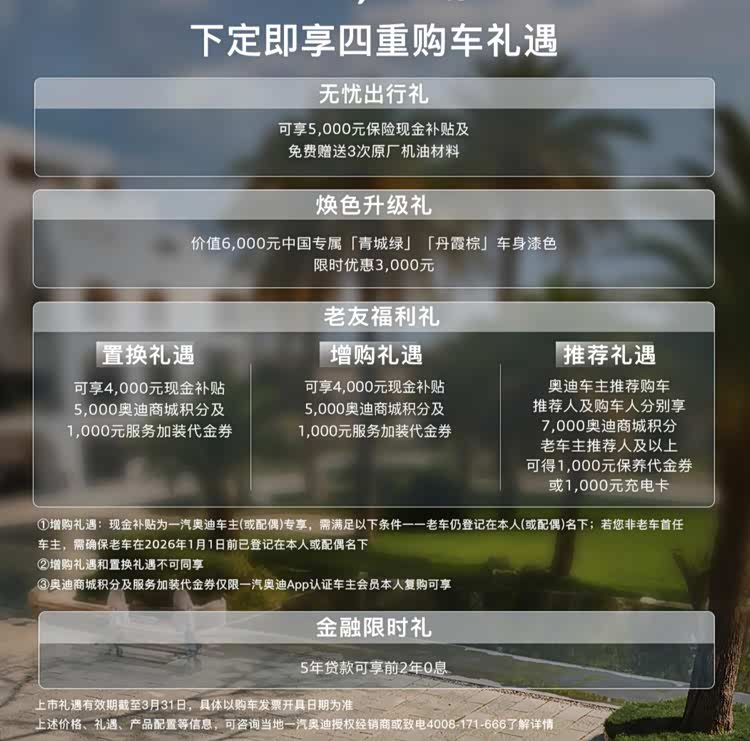 车家号·0浏览·2026-03-19 16:22 · 广东日前,一汽奥迪A5L全域智混版quattro正式上市,新车官方指导价34.68万元,心动入手价32.48万元。此次,新车可视为顶配版本,而配置上也有所升级。