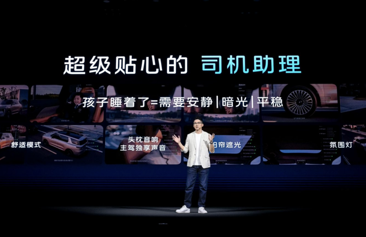 发布会上,还有一个极具温度感的功能演示场景,生动诠释了IM Ultra Agent如何从“执行指令”进化到“理解状态”。当用户轻声说出“孩子困了在睡觉”,车辆瞬间进入守护模式,导航提示音自动调低,并智能切换至驾驶位头枕音响,避免惊扰熟睡的孩子。而且车内氛围灯变暗,空调出风调整为无感柔和模式,避免直吹。