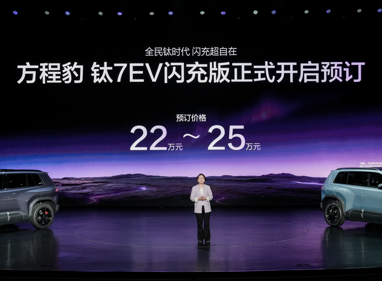 方程豹钛7 EV闪充版预售价22-25万元,车型已经明确会在4月上市,外观造型和现款差异不大,将换装纯电动力系统,分别匹配单电机、双电机,对应的最大功率分别是300kW、515kW,车辆拥有比亚迪第二代刀片电池、闪充技术的赋能,纯电续航最长755km,只需要9分钟即可将电池电量从10%充至97%。