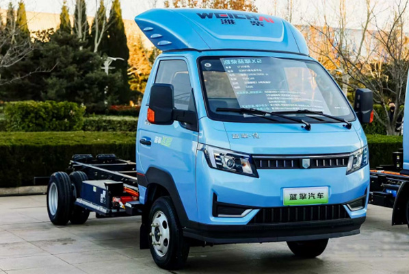 蓝擎X1是末端物流的“最后一公里专家”,专为走街串巷拉货、商超快递配送、生鲜同城接单等场景设计,灵活高效、适配性强是其核心亮点。该车搭载潍柴120千瓦/300牛・米电机,搭配汉德2.5T免维护后桥,传动效率达97%;电池提供潍柴56KWh弗迪刀片电池、亿纬67KWh单包中置两个版本,满载续航300-350Km,续航表现较竞品提升23.8%。作为行业首款集成式怀挡设计小卡,其搭载的刀片电池穿刺不起火,搭配鸟笼式框架车身,安全性能拉满;整车高度仅1961mm,转弯半径<6.3米,可轻松驶入老旧小区地库,货箱规格覆盖3.7-4.18米,完美适配末端物流的多样化需求。