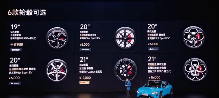 轮圈尺寸覆盖19至21英寸,不同尺寸对续航、舒适性与操控会产生一定影响。例如小尺寸轮圈更偏向续航与舒适,大尺寸轮圈则提升视觉效果与抓地表现。此外,前后轮胎宽度采用不同规格组合,前245mm、后265mm,这种设定更偏向后驱或高性能调校,能够在加速与弯道中提供更稳定的抓地力分配。