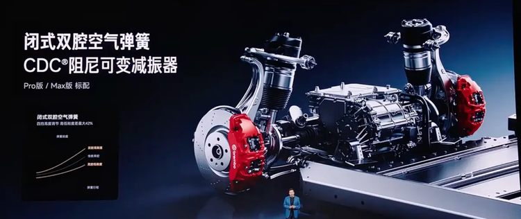 底盘结构采用前双叉臂与后五连杆独立悬架,这一组合在操控与舒适之间取得平衡。Pro与Max版本增加双腔空气悬架与可变阻尼减振器,可根据路况自动调节悬架状态。在软件层面,新增湿滑模式与路面识别能力,通过传感器与算法对路况进行预判,并调整动力输出与制动分配。这类功能在雨雪天气或低附着力路面中更具实际意义。此外,底盘预瞄与抬升功能可以在通过复杂路面时提前调整悬架高度,减少底盘磕碰风险。