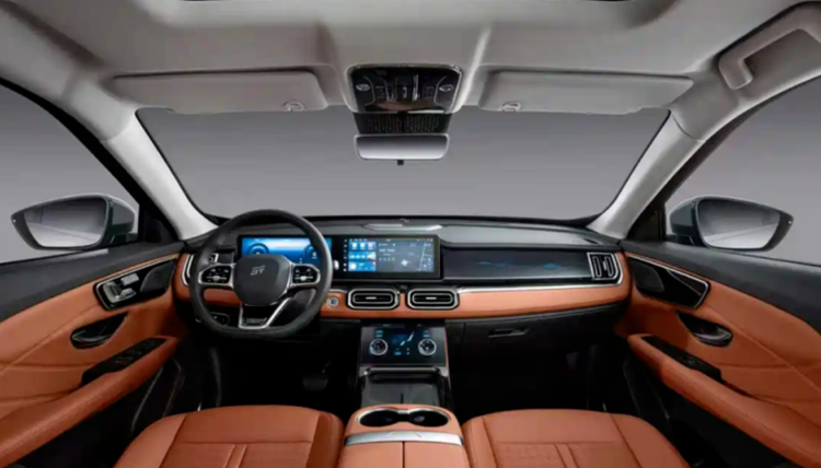 车内提供黑橙内饰配色,搭载双12.3英寸大屏,内置全场景娱乐生态。配置方面,新车搭载手机50W无线充电、5L冷暖冰箱,并采用怀挡设计。