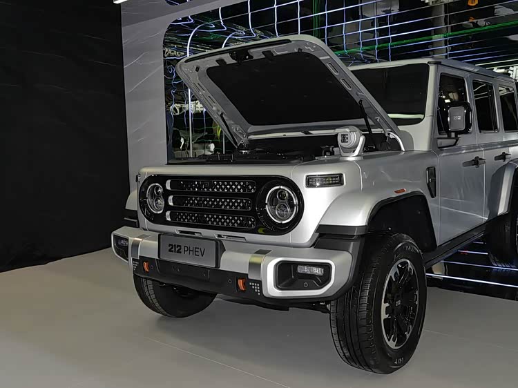 外观上,它完美融合经典与创新。延续家族“一拱,二圆,三横,四纵”设计语言,蚌式发动机盖、三段式中网等经典元素保留,唤醒硬派越野记忆。车头“212”Logo采用发光设计,圆形大灯融入LED光源,功能实用又具复古韵味。前保险杠硬朗且配备银色防擦板,增强硬派气质与防护性。