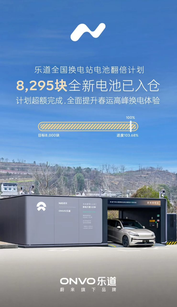 补能网络层面,乐道全面共享蔚来“九纵十一横”高速换电网络,全国可用换电站超3700座,覆盖550+城市、98%以上地级市,京津冀、长三角等核心区域实现“换电县县通”,全国主要高速路段平均每180公里一座换电站,跨省出行全程无焦虑。针对马年春节出行高峰,乐道提前超额完成“电池翻倍计划”,累计增投8295块全新电池包,全网可用电池突破15000块,单站电池储备翻倍,换电全程仅需3-5分钟,随到随换效率堪比燃油车加油,远超超快充补能速度。