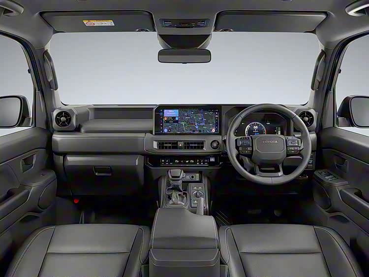 车辆的内部装潢以粗旷而实用为主导,主要使用黑色的硬质塑料,并内置了仪表和半悬浮中控屏,同时还保留了大量的物理按键,以满足越野环境下的耐用性和操作便捷性需求。