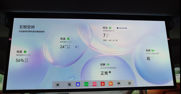 车内标配“健康舒适座舱”,座椅皮革通过全球最高标准OEKO-TEX婴儿级认证,触感细腻亲肤,杜绝有害气体释放;搭配松下nanoe X纳米水离子净化技术与PM0.1级空调滤芯,经第三方检测,可有效过滤空气中的颗粒物与有害气体,过滤效率高达99.97%。优于竞品A的95%和竞品B的98%。