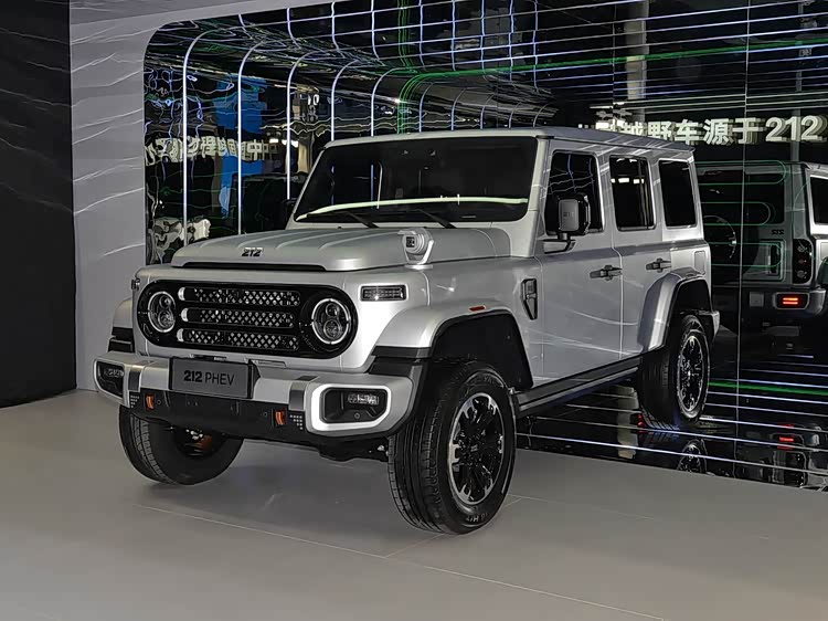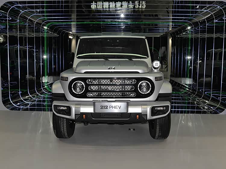 从外形上看, 212 T01新能源(参数|询价)在经典和创新之间把握得当。该设计延续了“一拱、二圆、三横、四纵”的设计理念,并保留了蚌式发动机盖、三段式中网等经典设计元素,从而唤起了硬派越野的记忆。车头的“212”Logo是发光的,在夜晚有很高的识别度;圆形大灯集成了LED光源并具有自动开启和关闭的特点,复古而实用;硬朗的前保险杠搭配银色防擦板增加了硬派气质和防护。