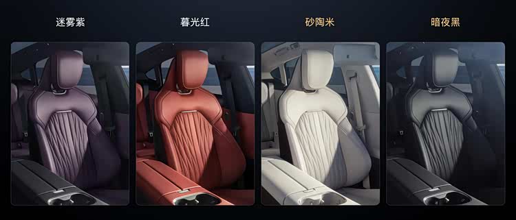 首先,在色彩方面,内饰共有四种颜色选择,其中两款延续经典色「暮光红」和「迷雾紫」,同时新增「暗夜黑」、「砂陶米」两款首发新色。