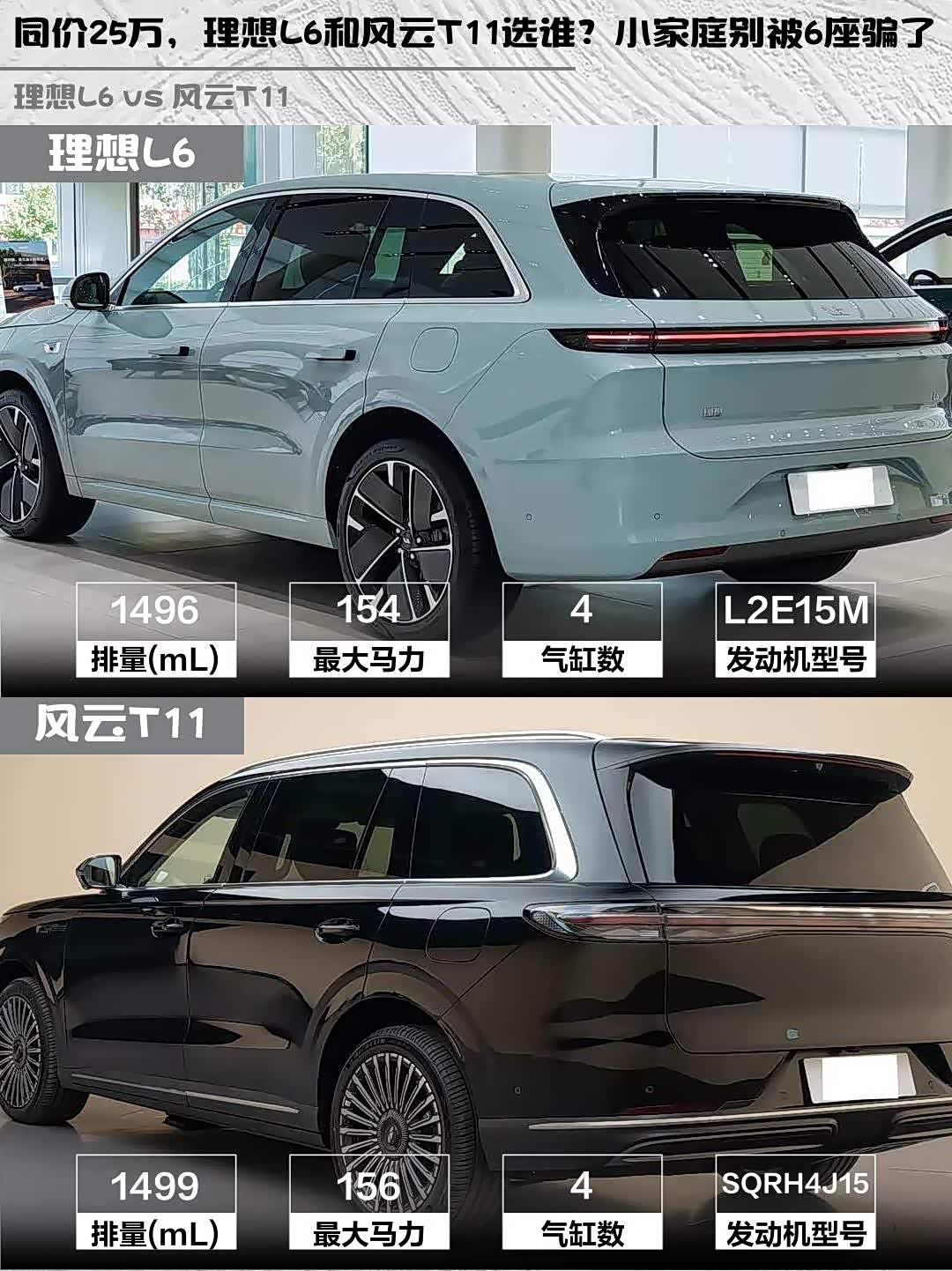 最近在25万级增程SUV里纠结到秃头😅,理想L6 Pro智能焕新版和 风云T11(参数|询价) 220四驱全家乐到底怎么选?深度体验两周后,掏心窝子分享真实感受!