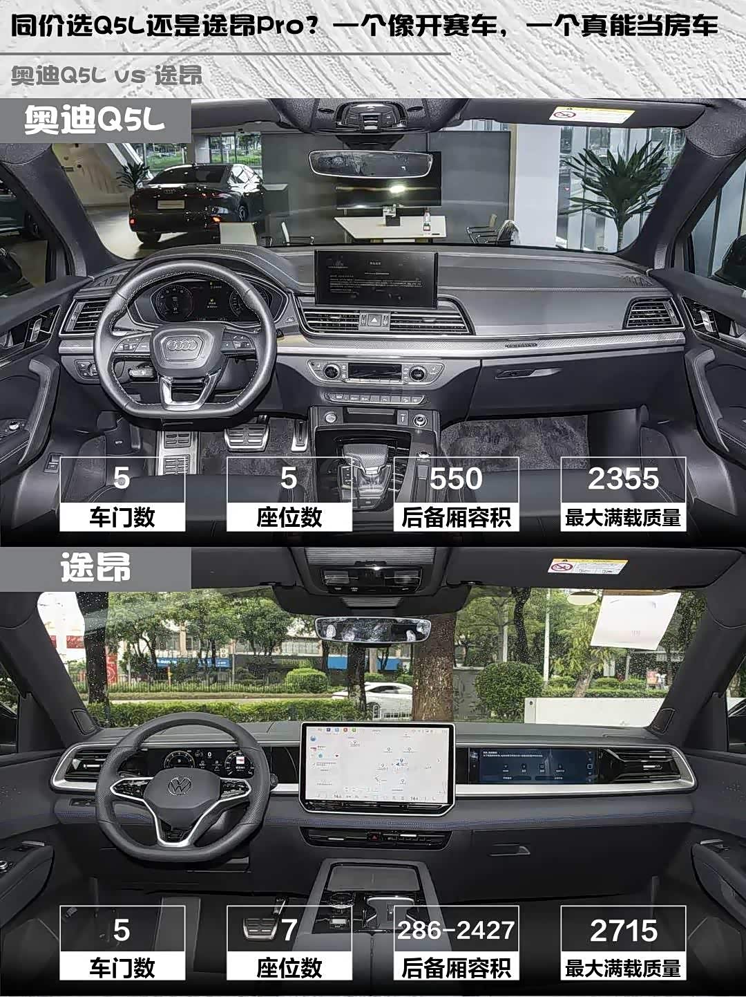 同价选Q5L还是途昂Pro?一个像开赛车,一个真能当房车
