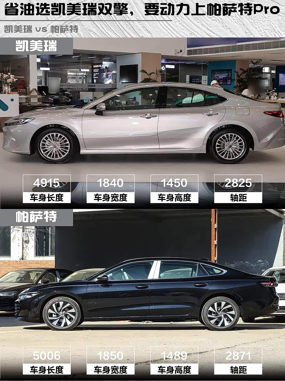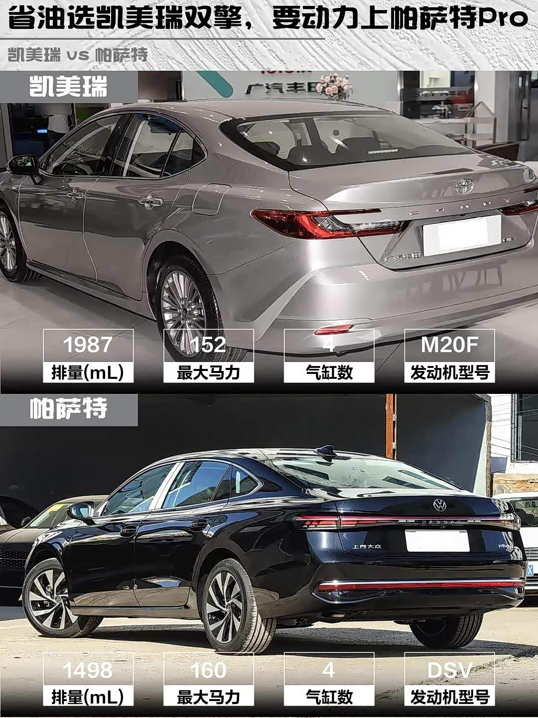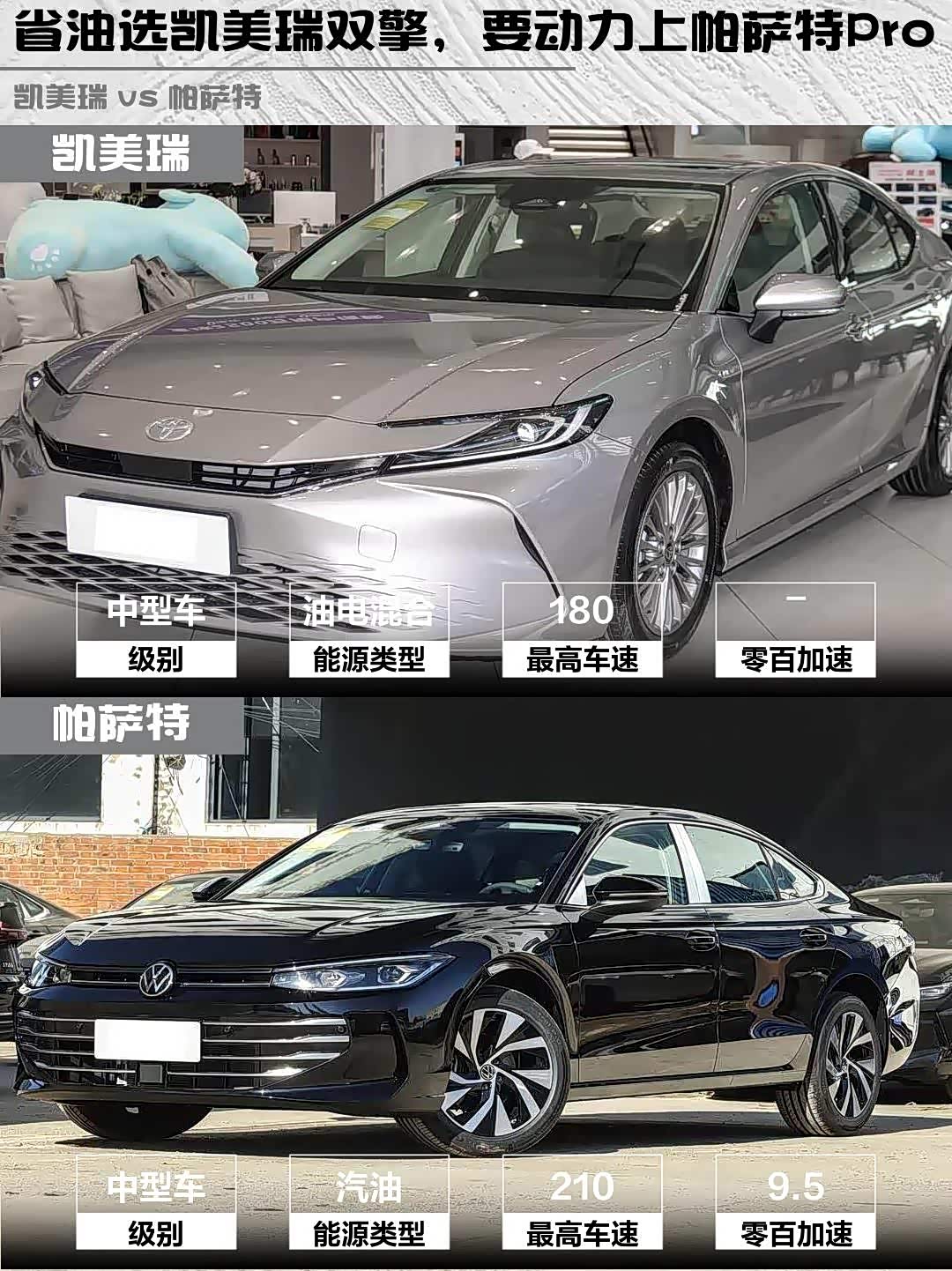要省油平顺选凯美瑞双擎,城市代步神器;追求动力空间选帕萨特,高速巡航更稳。两款都是中型车标杆,试驾时建议重点体验:凯美瑞的混动静谧性 vs 帕萨特的涡轮爆发力,后排空间实际感受,以及车机流畅度这些细节~