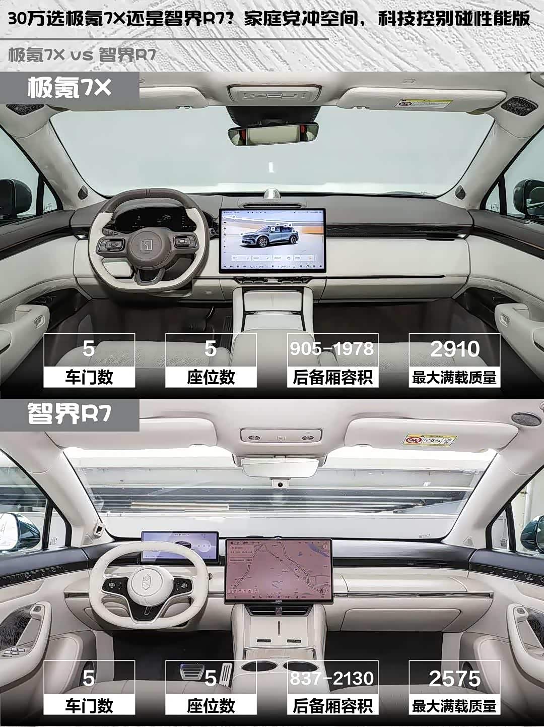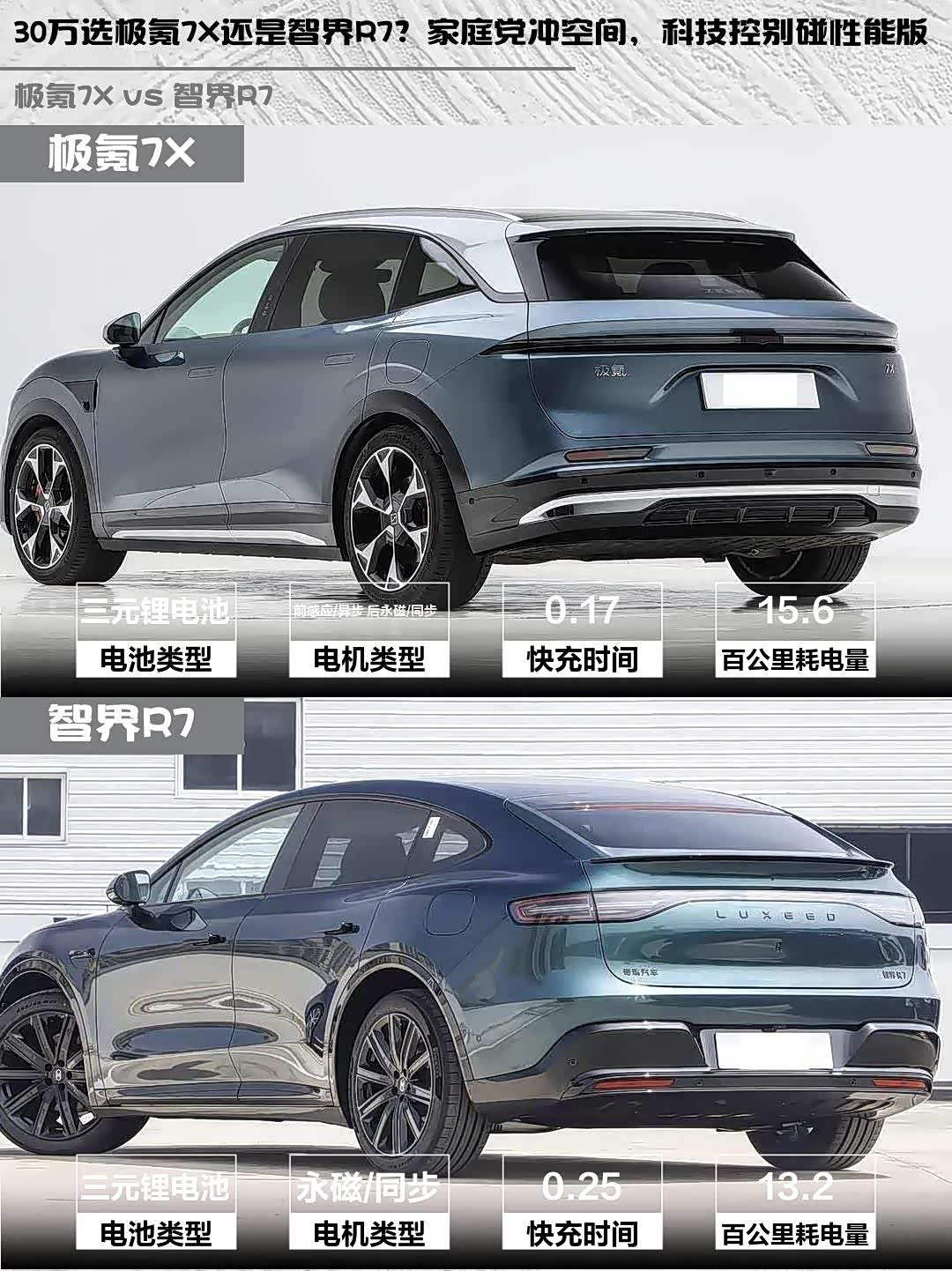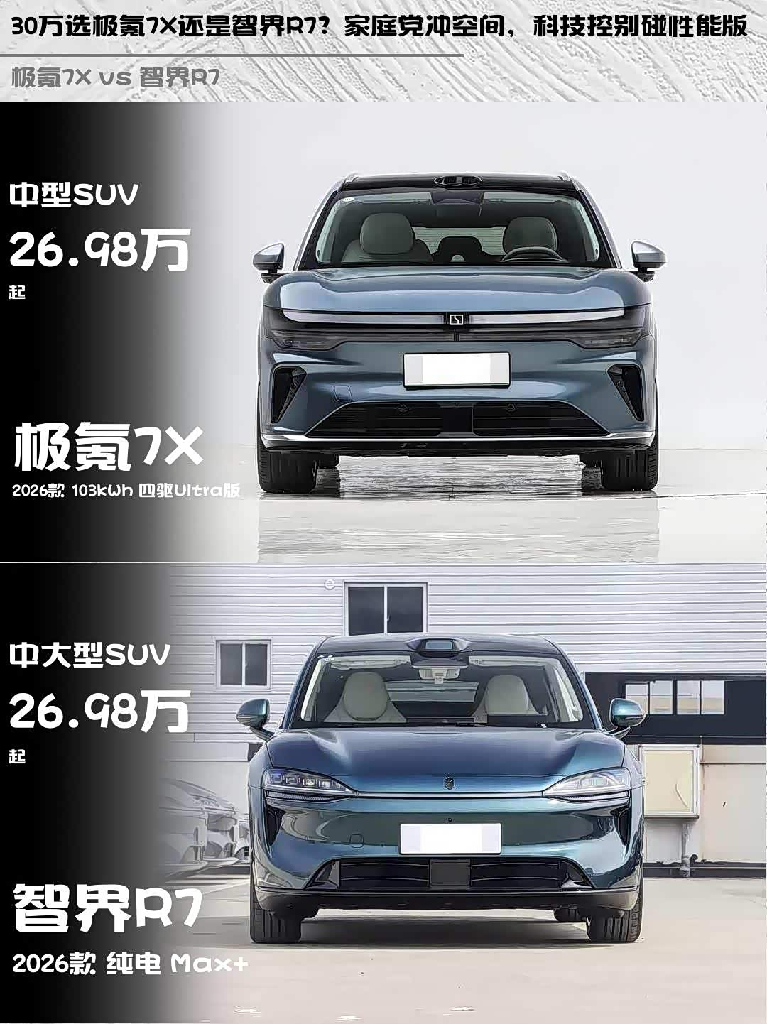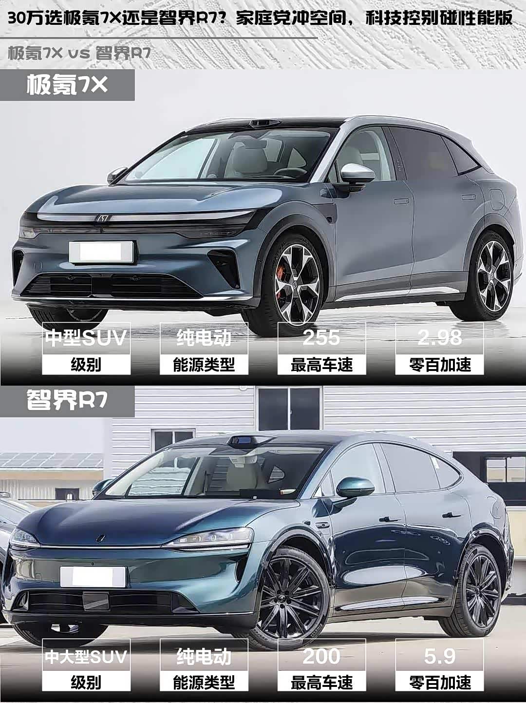 极氪7X(参数|询价) vs 智界R7:30万级纯电SUV王者之争