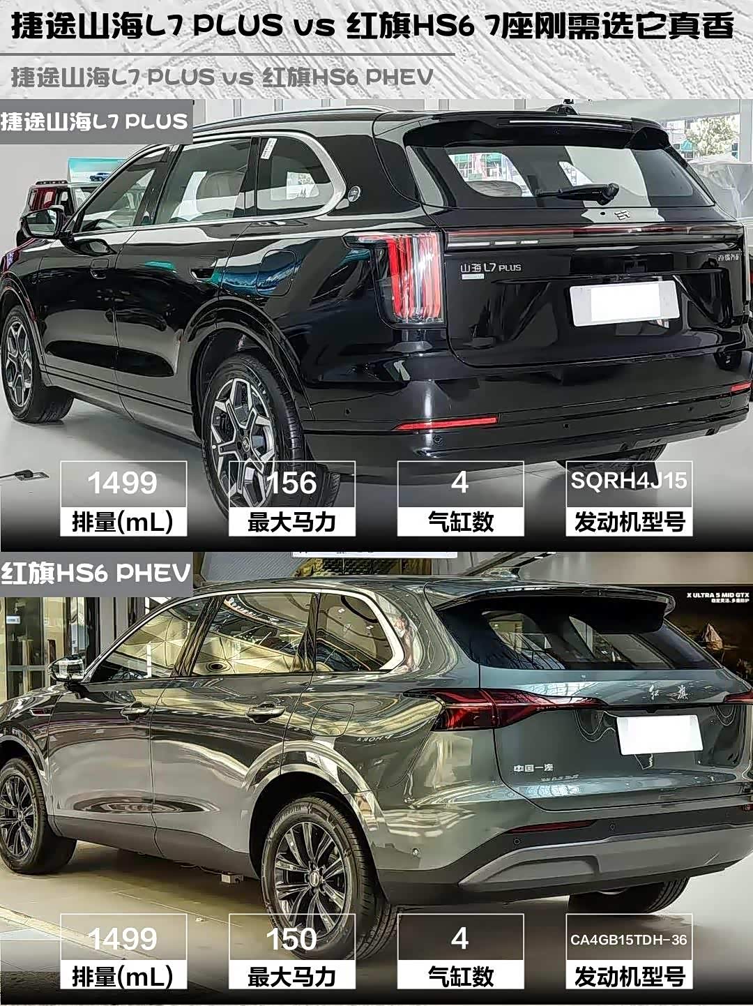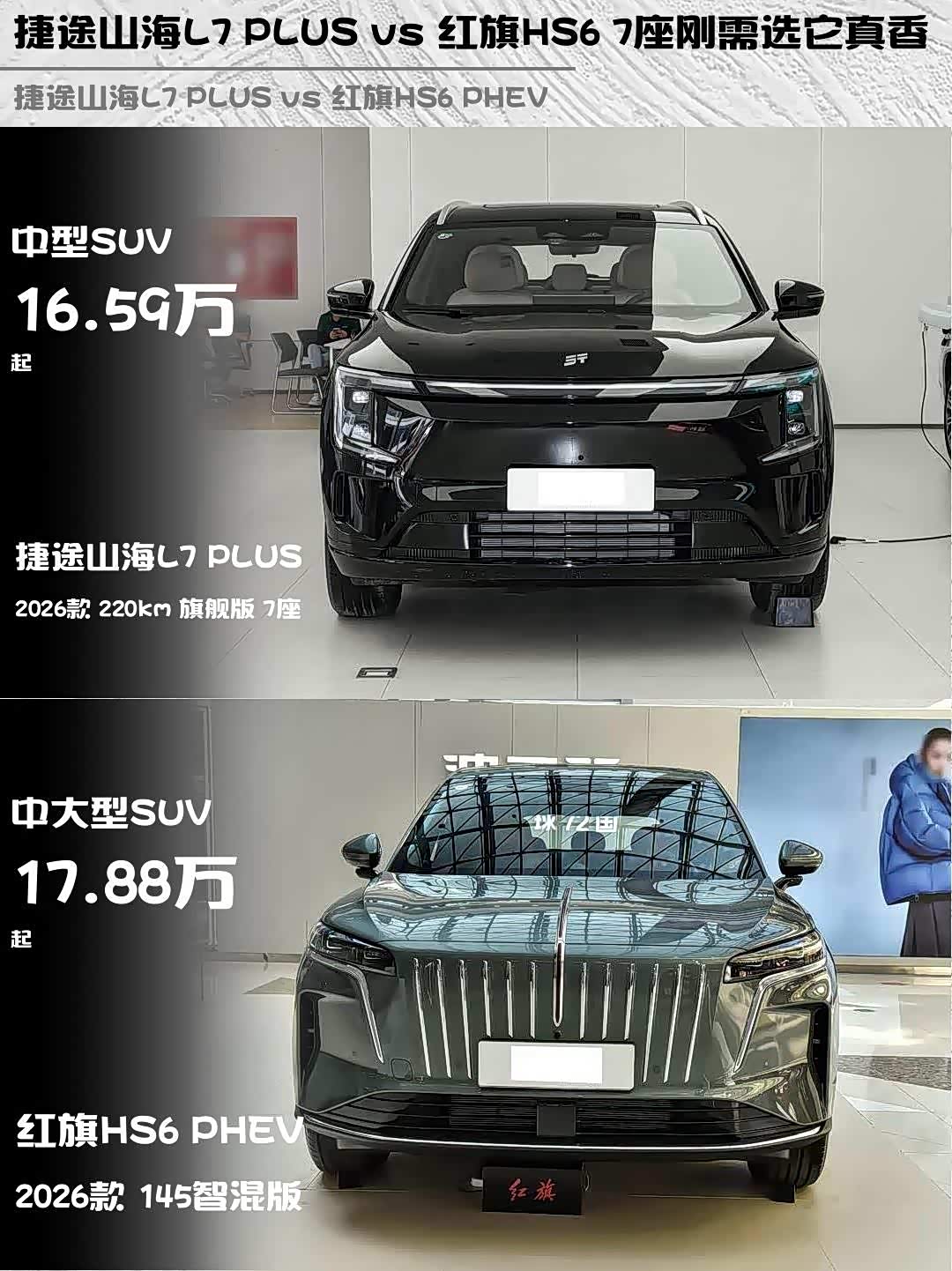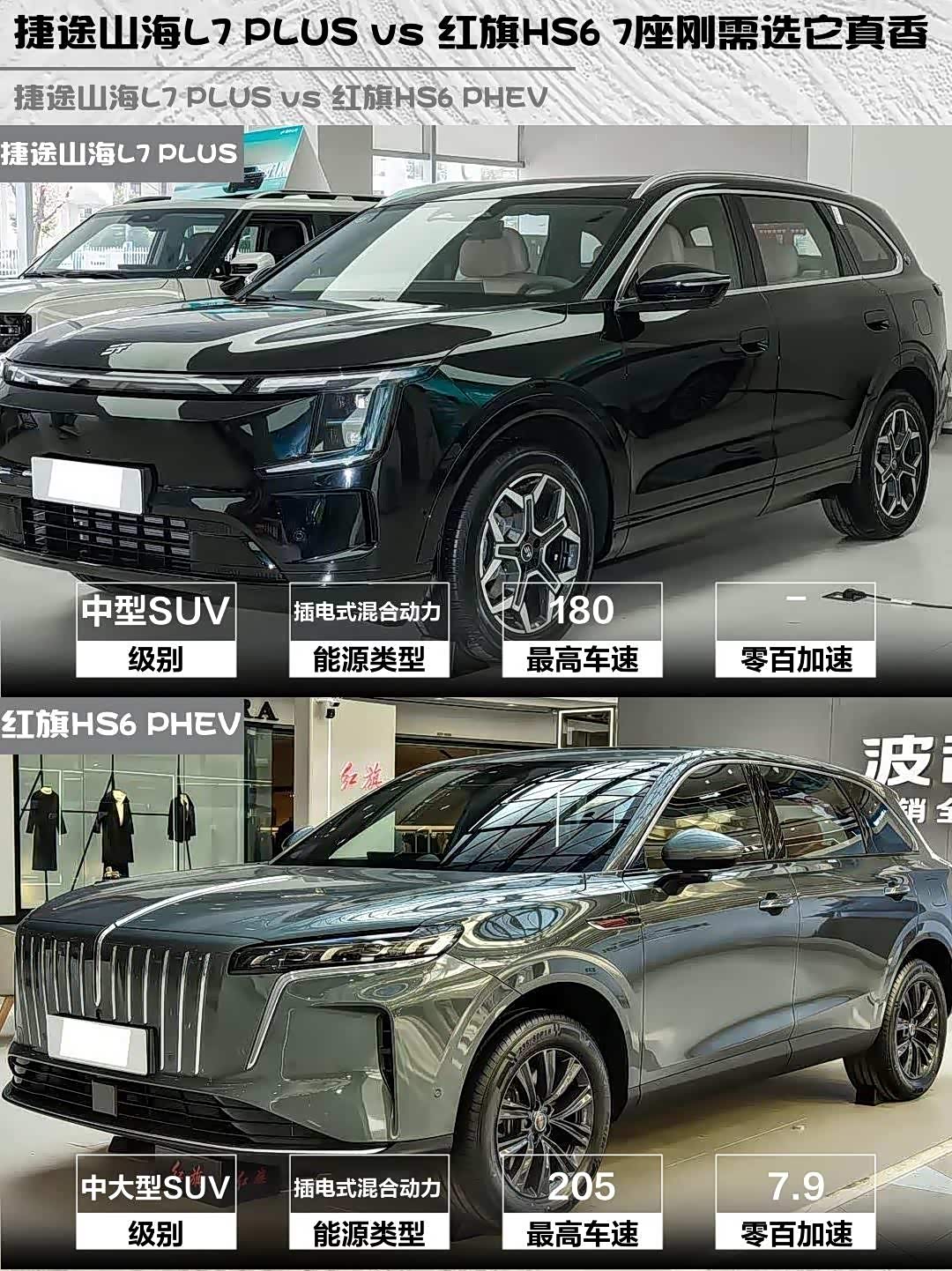 最近在选插混SUV的朋友看过来!🚗 今天深度对比两款热门车型—— 捷途山海L7 PLUS(参数|询价) 2026款 220km旗舰版7座 vs 红旗HS6 PHEV 2026款145智混版,实测干货分享给纠结中的你!