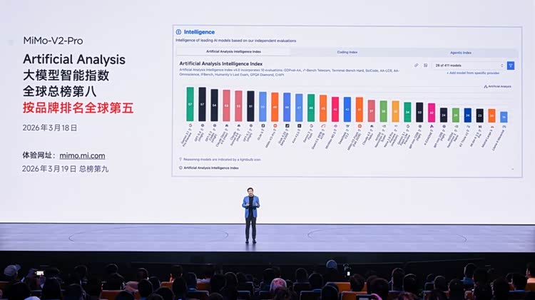 雷军同时宣布,小米正式发布三款自研大模型:面向Agent时代的旗舰基座模型Xiaomi MiMo-V2-Pro、全模态大模型Xiaomi MiMo-V2-Omni和语音大模型Xiaomi MiMo-V2-TTS。其中Xiaomi MiMo-V2-Pro在全球权威大模型综合智能排行榜 Artificial Analysis上位列全球总榜第八、按品牌排名全球第五,排名超过xAI的Grok。