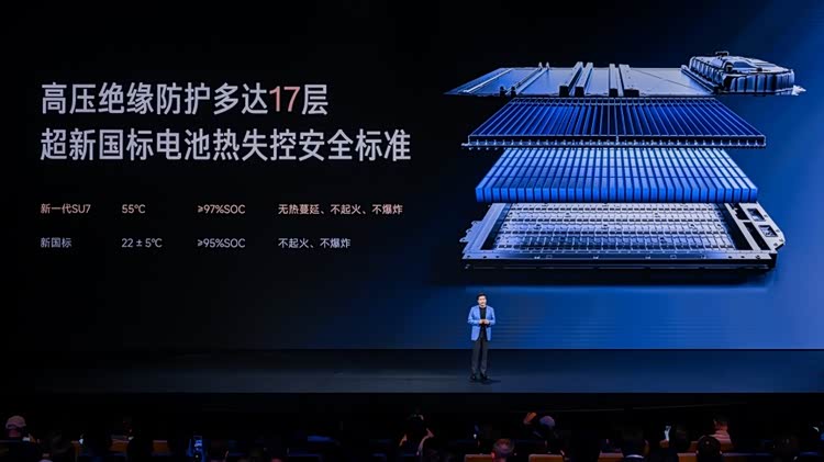在电池安全上,新一代SU7电池包拥有17层高压绝缘防护、1230多项严苛验证,并且升级了1500MPa防刮底横梁和底部防弹涂层,可以做到行业最高的电池热失控安全标准。
