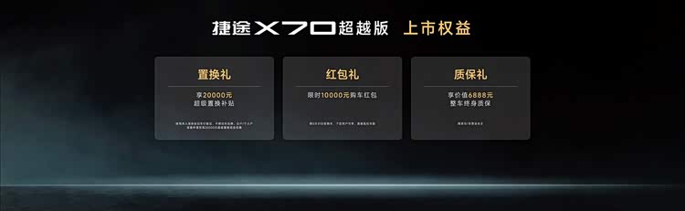 2026款捷途X70超越版有2款车型,官方指导价9.99万元-10.39万元,叠加3重购车豪礼后,限时抢购价为6.99万元-7.39万元