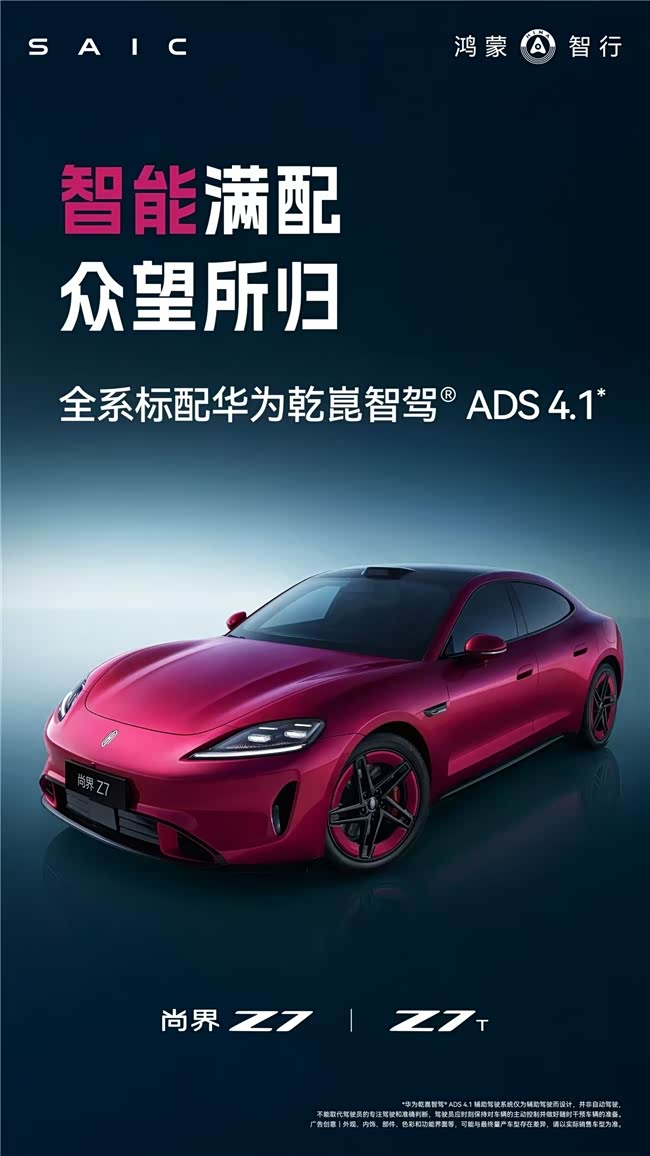 尚界Z7/Z7T的登场,彻底打破了纯电轿跑市场盲目拼加速的畸形内卷,回归汽车最核心的安全与驾控本质。华为巨鲸电池攻克新能源电池安全痛点,华为途灵平台赋予整车从容可控的高阶驾控,华为乾崑智驾ADS 4.1提升驾驶安全性与便捷性,三大核心技术强强联合,构成了尚界Z7“科技安全轿跑”的完整产品力。